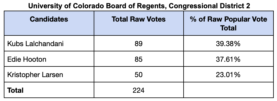 DENVER – The Colorado Democratic Party concluded assemblies for Congressional District Assemblies 1, 2, 3, 6, 7 8 tonight. Below are the final results for candidates who earned access to the primary ballot by acclamation, as well as a breakdown of contested races.